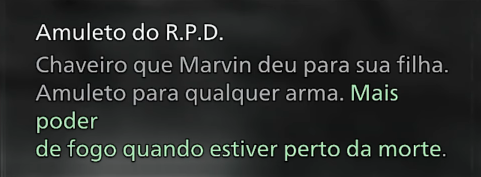 Ao pegar as 5 cartas de “Meryl para Mamãe” será desbloqueado o chaveiro Amuleto do R.P.D – Chaveiro que Marvin deu para sua filha. Amuleto para qualquer arma. Mais poder de fogo quando estiver perto da morte.